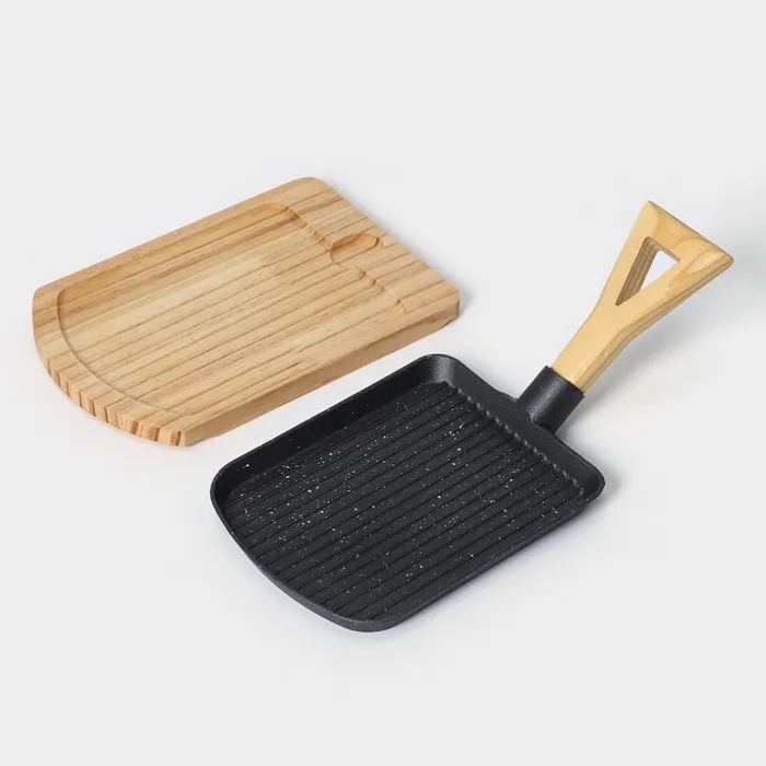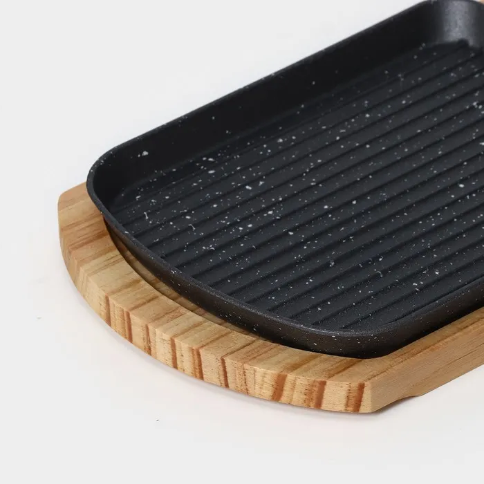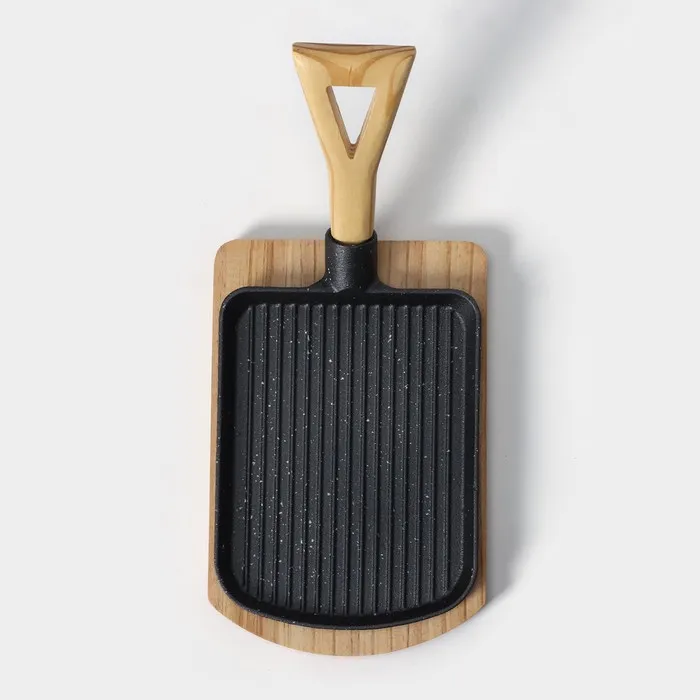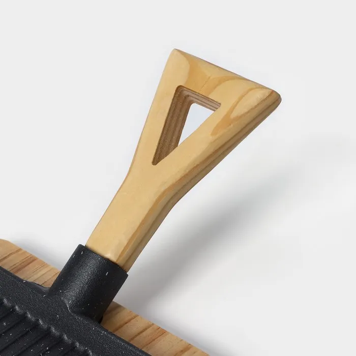 Сковорода чугунная на деревянной подставке «Лопата. Гриль», 23×18 см, чёрная — Характеристики