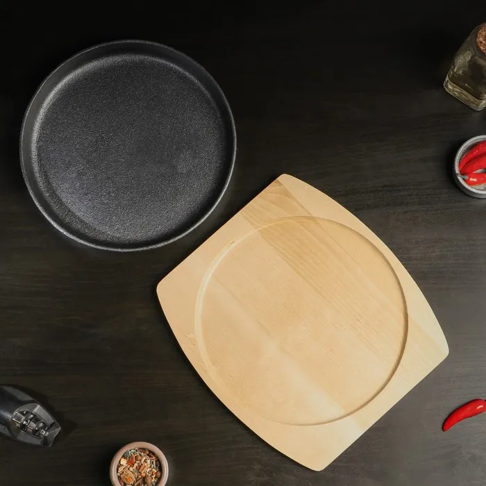 Сковорода чугунная Magma. В комплекте идёт деревянная подставка.