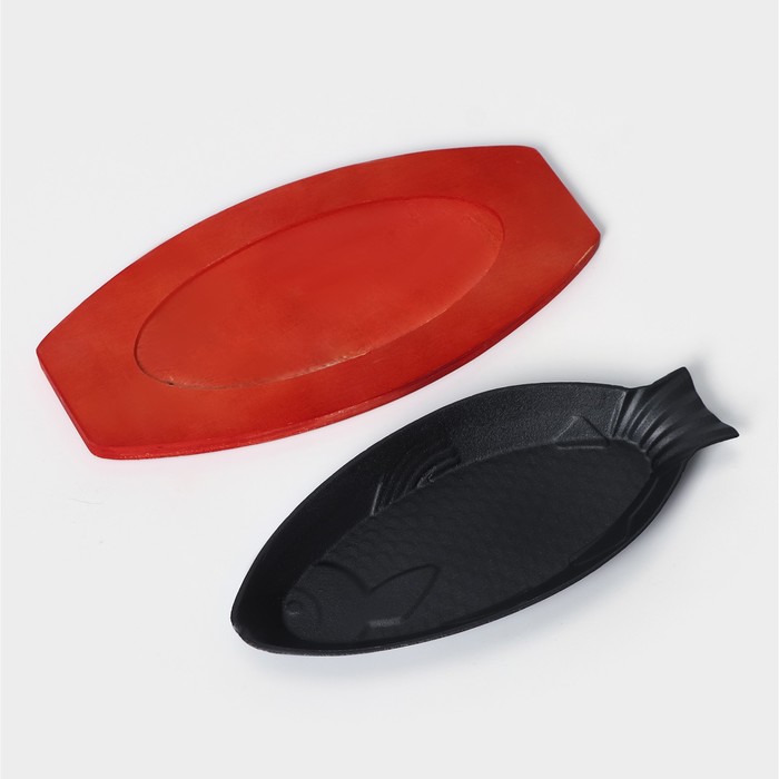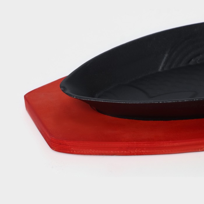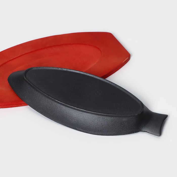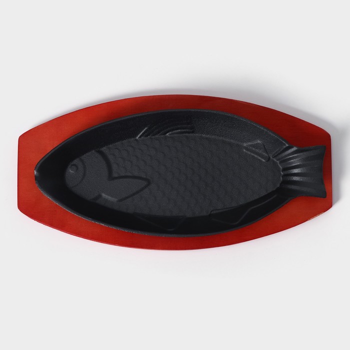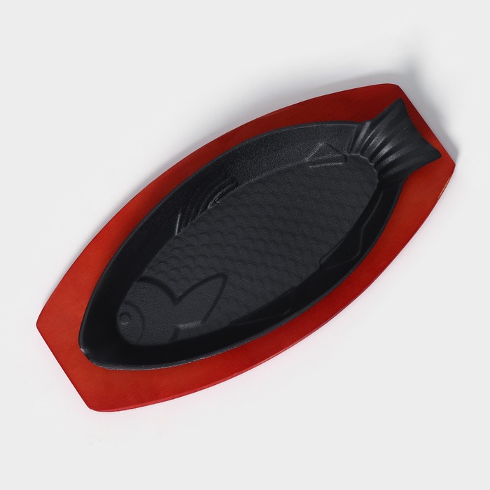 Сковорода чугунная на деревянной подставке «Рыбка», 30×13×3 см, цвет чёрный — Характеристики