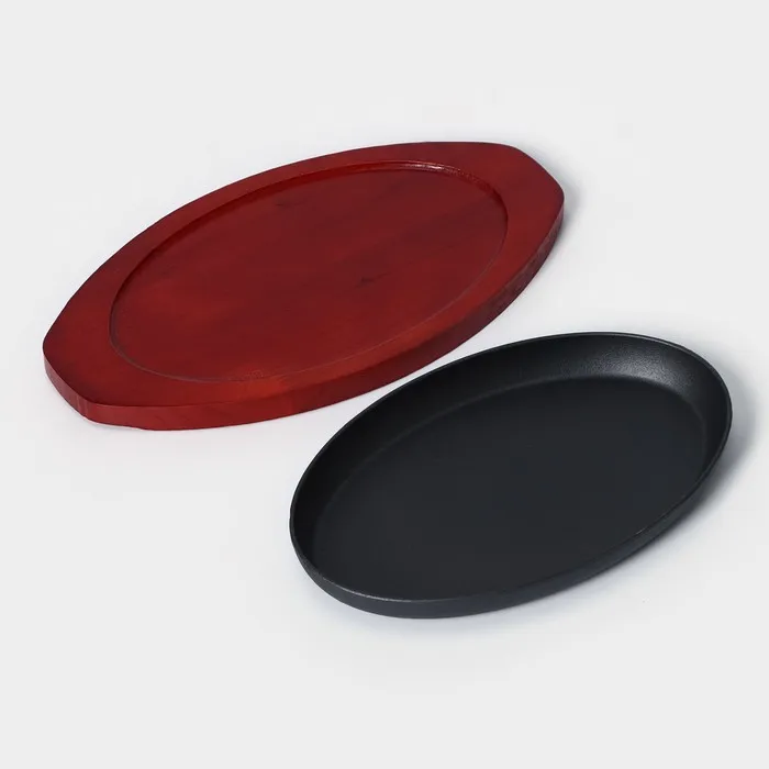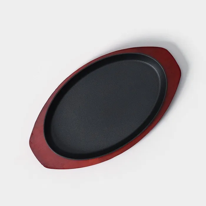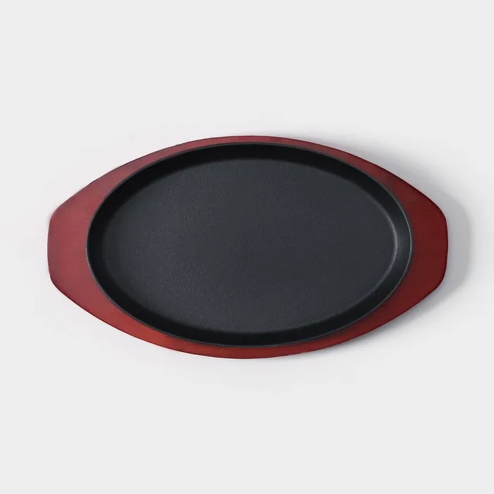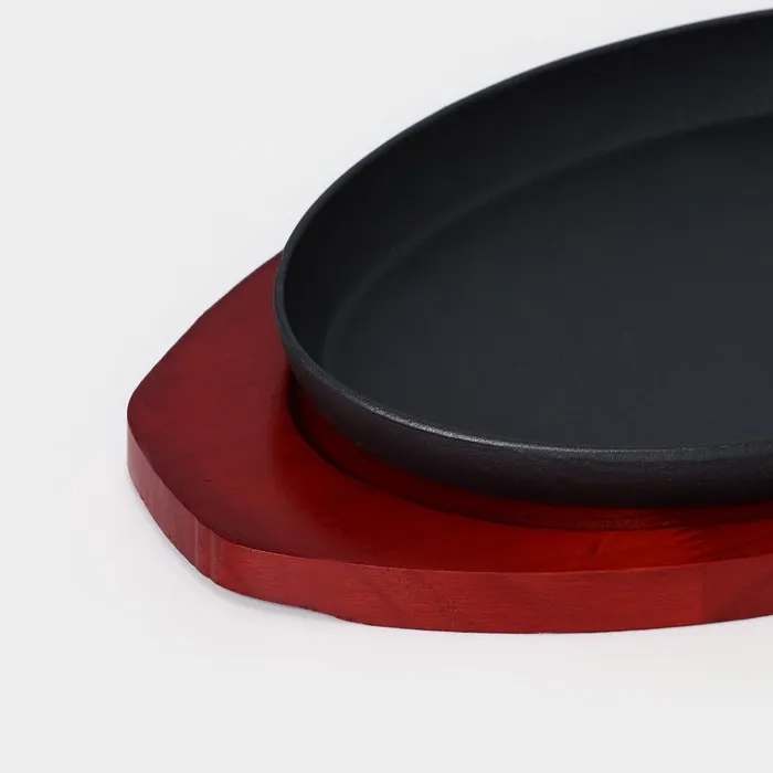 Сковорода чугунная «Овал», 26.5×16.5 см, на деревянной подставке, индукция, чёрная — Характеристики