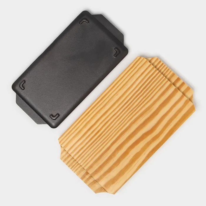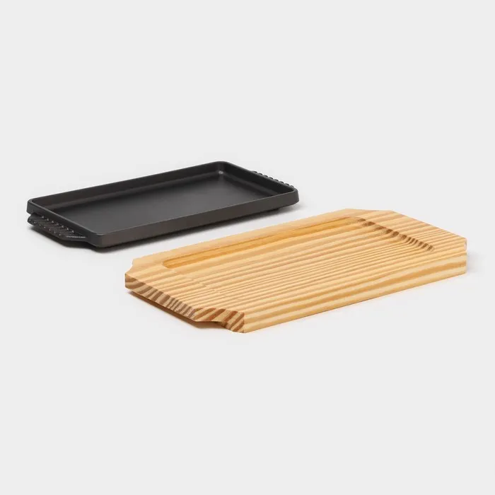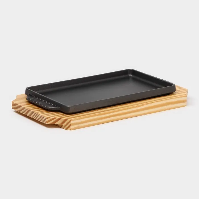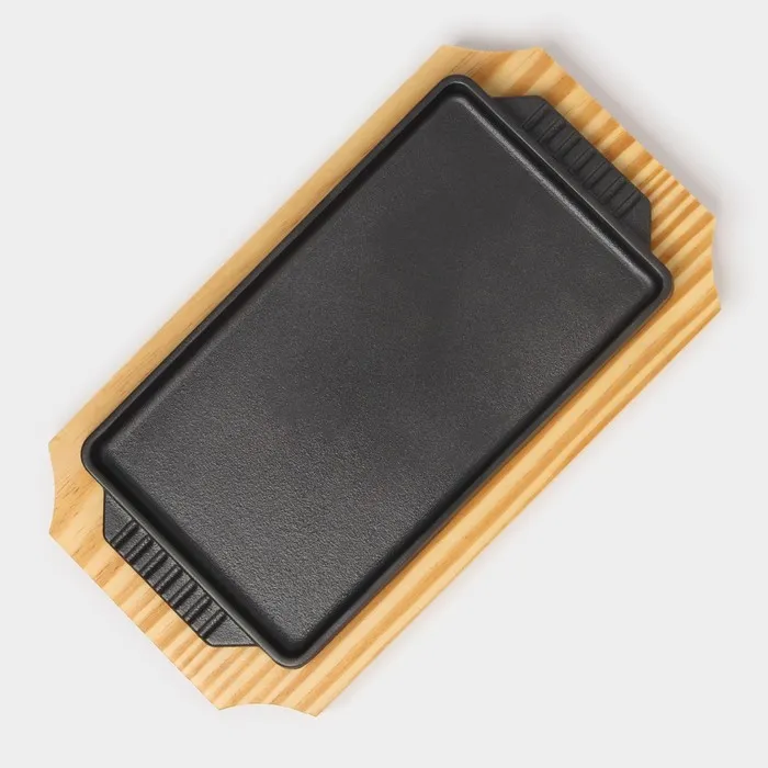 Сковорода чугунная «Прямоугольник», 23.5×12×3 см, с ручками, на деревянной подставке, индукция, чёрная — Характеристики
