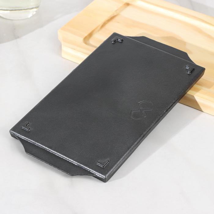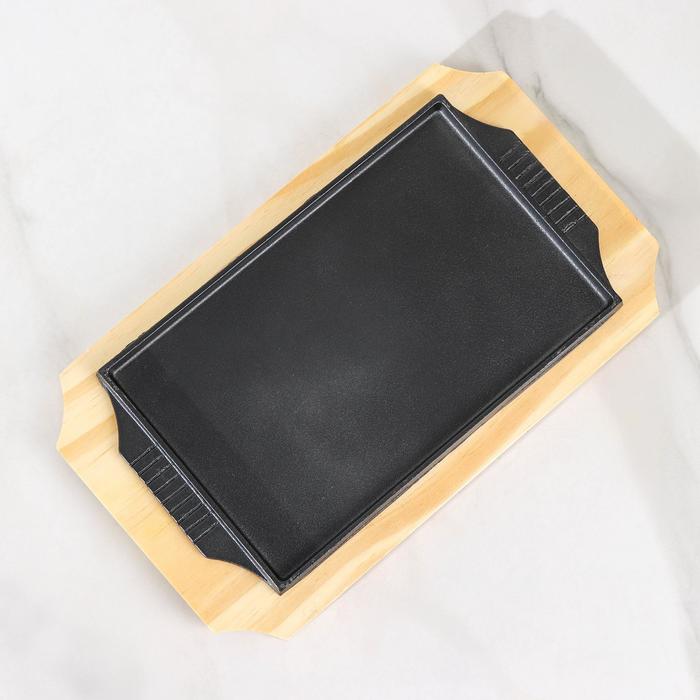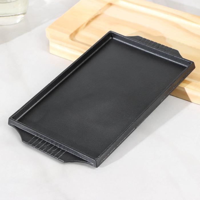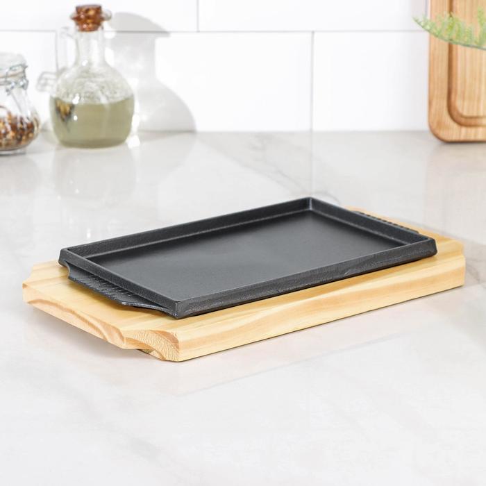 Сковорода чугунная «Прямоугольник», 25×14 см, на деревянной подставке — Характеристики