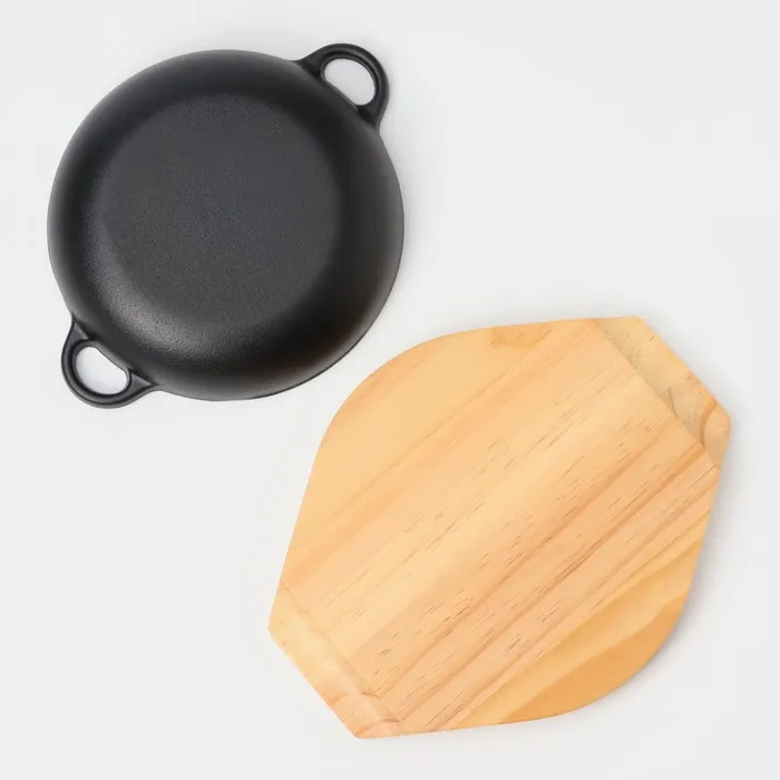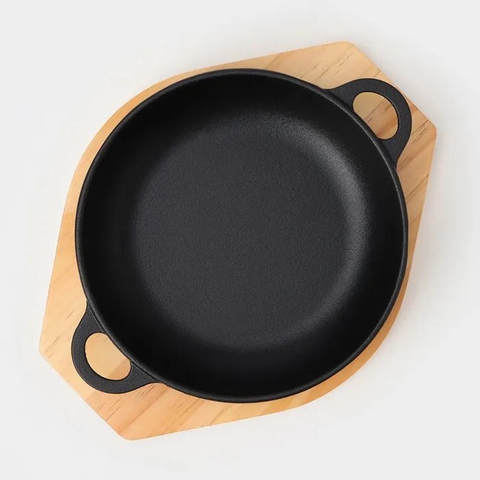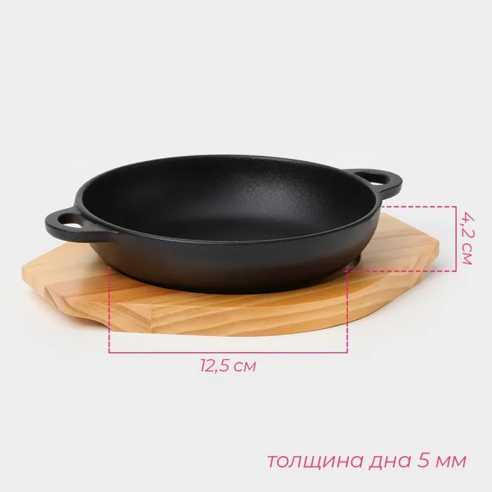 Сковорода чугунная «Жаровня», d=19 см, на деревянной подставке, индукция, чёрная — Характеристики