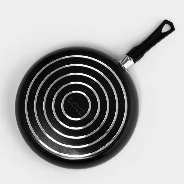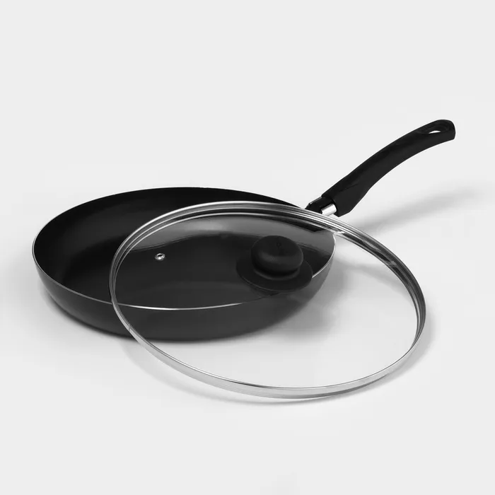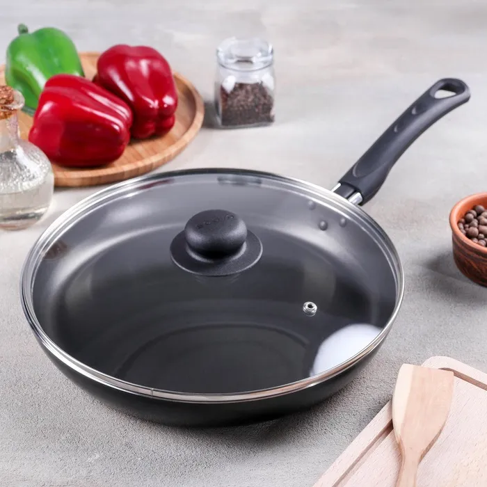 Сковорода Consul, d=28 см, пластиковая ручка, стеклянная крышка, антипригарное покрытие, алюминий, чёрная — Характеристики