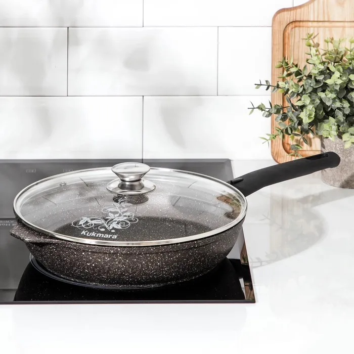 Посуда из литого алюминия. Имеет инновационное антипригарное мраморное покрытие на водной основе, которое изготовлено по немецкой технологии (Weilburger Coatings GmbH) и усилено сверхтвёрдыми частицами минералов.