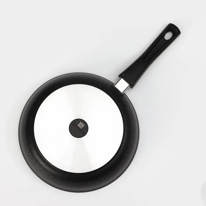 - Высокопрочное антипригарное мраморное покрытие на водной основе усилено сверхтвёрдыми частицами минералов.