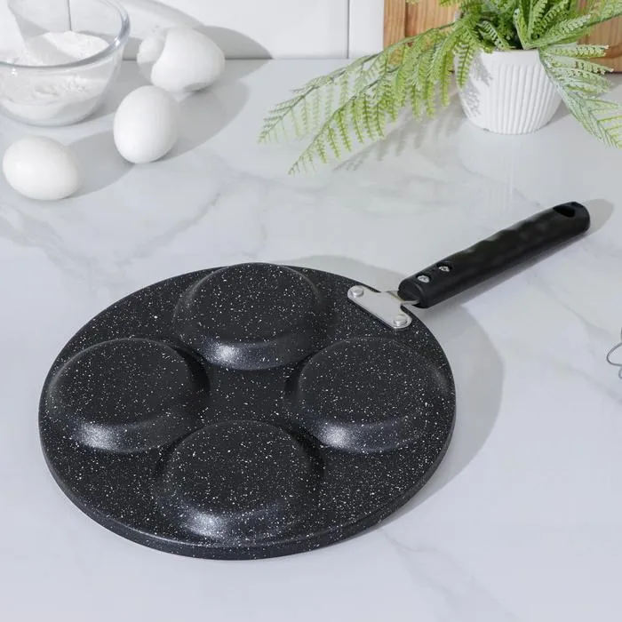 Сковорода для оладий «Квартет», 41×24×2,5 см, пластиковая ручка, цвет чёрный — Характеристики