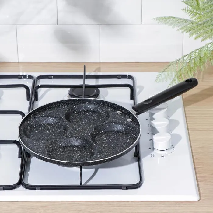 Сковорода для оладий имеет ячейки, благодаря которым продукты будут иметь ровную и красивую форму. Сковородка универсальная: подойдет для жарки блинчиков, оладий, панкейков, сырников, яичницы, омлета, котлет и не только. Подойдет для эстетичной сервировки стола на Масленицу.