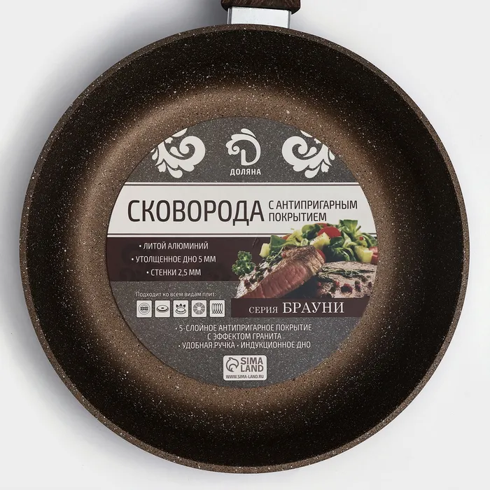 Сковорода Доляна «Брауни», d=24 см, съёмная ручка, стеклянная крышка, антипригарное покрытие, индукция — Характеристики