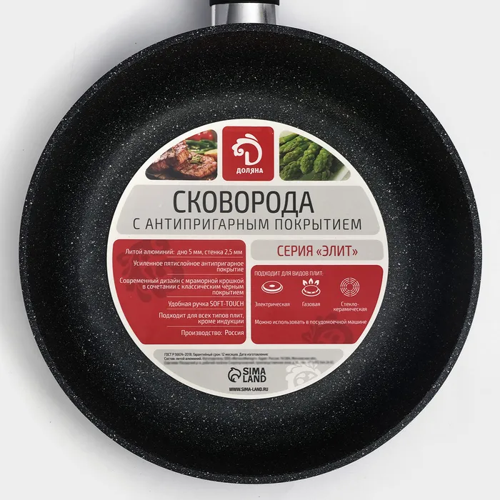Сковорода Доляна «Элит», d=24 см, пластиковая ручка, антипригарное покрытие, цвет чёрный — Характеристики