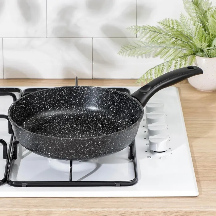 Сковорода Доляна «Элит», d=24 см, пластиковая ручка, антипригарное покрытие, цвет чёрный