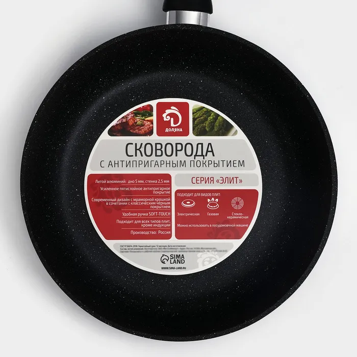 Сковорода Доляна «Элит», d=26 см, антипригарное покрытие, пластиковая ручка — Характеристики