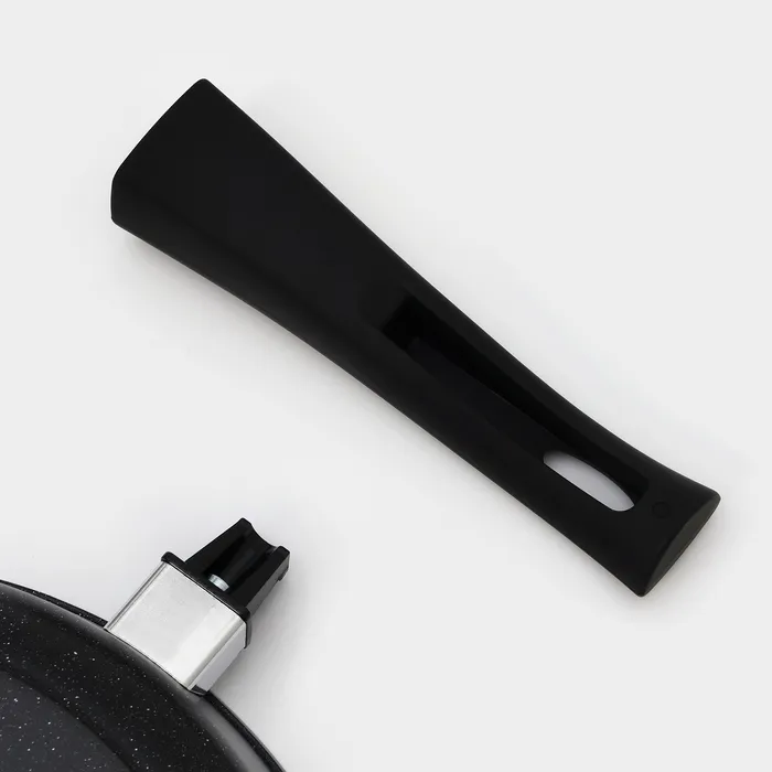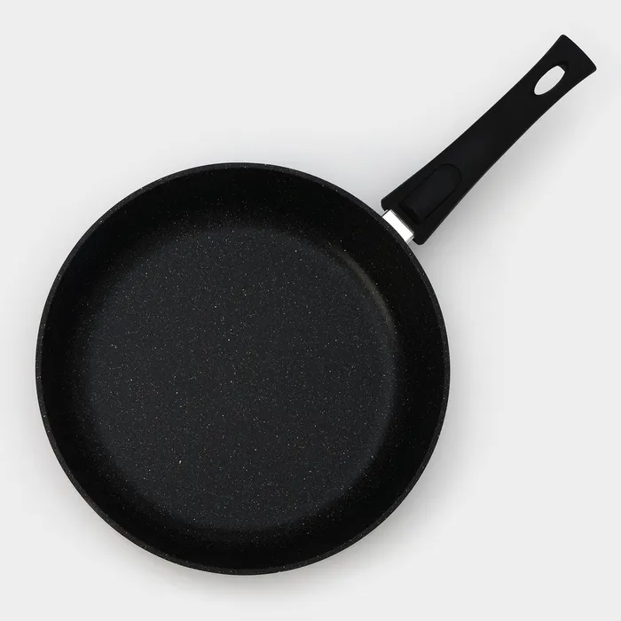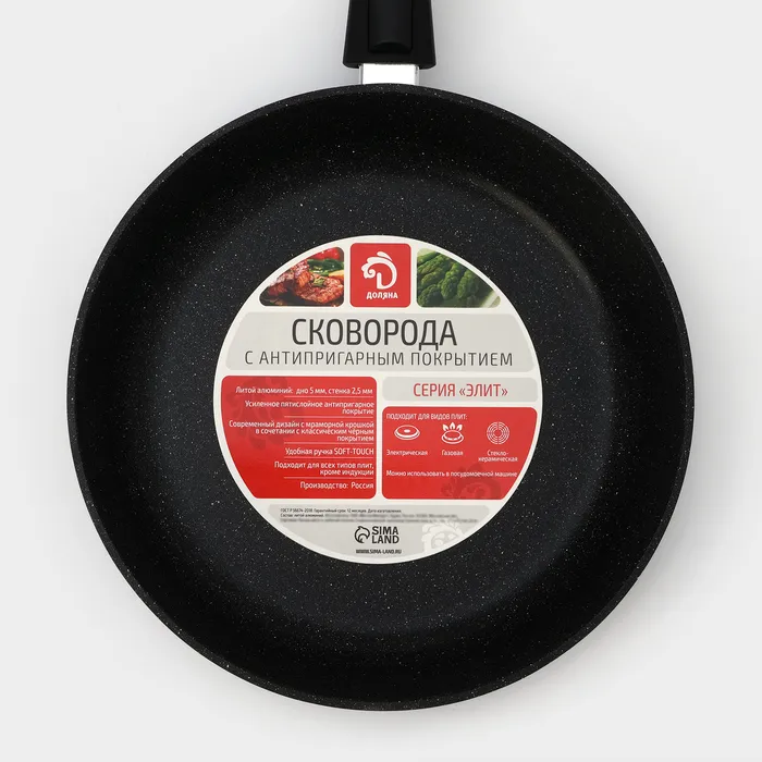 Сковорода Доляна «Элит», d=28 см, пластиковая ручка, стеклянная крышка, антипригарное покрытие, цвет чёрный — Характеристики
