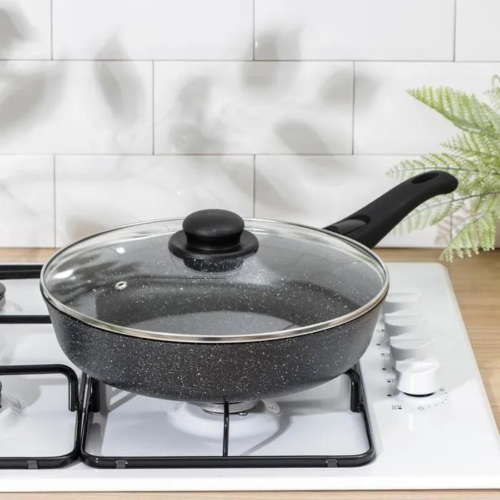 Сковорода Доляна «Элит», d=28 см, пластиковая ручка, стеклянная крышка, антипригарное покрытие, цвет чёрный