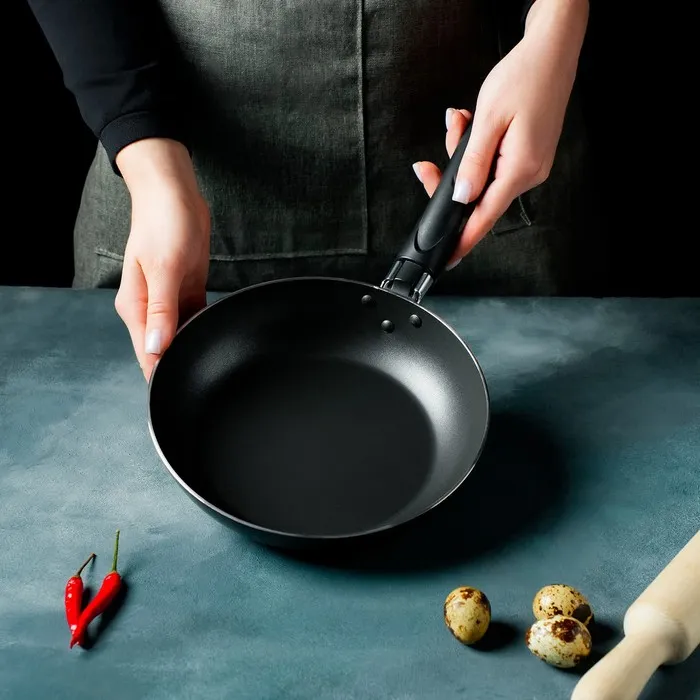 Сковорода изготовлена из высококачественного материала, обеспечивающего равномерное распределение тепла по всей поверхности. Антипригарное покрытие предотвращает прилипание продуктов и облегчает процесс мытья. Удобная пластиковая ручка не нагревается во время готовки, что обеспечивает безопасность использования.
