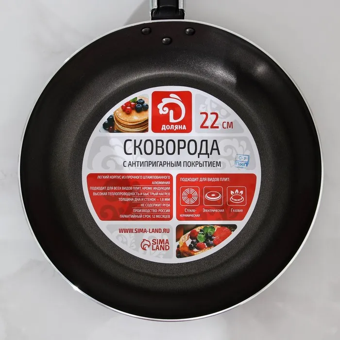 Сковорода Доляна Promo с пластиковой ручкой и антипригарным покрытием D=22 см—это незаменимый помощник на кухне, который позволит вам готовить любимые блюда быстро и легко.
