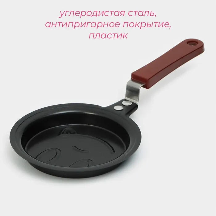 Сковорода Доляна «Улыбка», d=12 см, пластиковая ручка, антипригарное покрытие, цвет чёрный — Характеристики