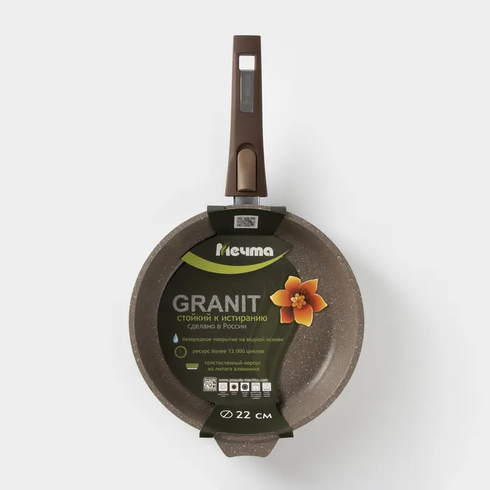 Сковорода «Гранит Brown», d=22 см, антипригарное покрытие, съёмная ручка, цвет МИКС — Характеристики
