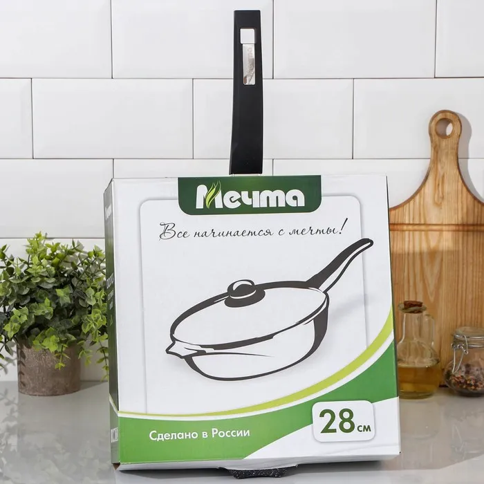 Сковорода из литого толстостенного алюминия «Мечта» станет незаменимым инструментом и надежным помощником на вашей кухне. Многофункциональная сковорода Гранит отлично подойдет для приготовления разнообразных блюд из мяса, рыбы и овощей. Благодаря термоаккумулирующим свойствам пищевого алюминия, пища на сковороде Гранит не пригорает, а томится, а благодаря новейшей формуле сверхпрочного антипригарного покрытия готовить можно при минимальном количестве масла не переживая за то что пища может пригореть. На посуде ТМ «Мечта» можно жарить, тушить и варить без потерь вкусовых и полезных качеств продуктов. Сковорода гранит из литого высококачественного пищевого алюминия «Мечта» станет незаменимым инструментом и надежным помощником на вашей кухне.