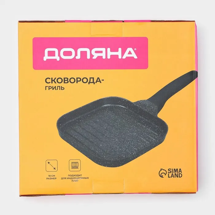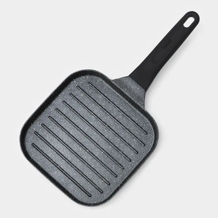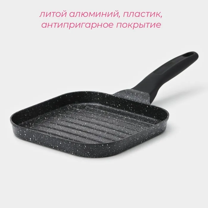 Сковорода гриль Доляна «Моно», d=18 см, литой алюминий, индукция, тёмная, мрамор — Характеристики