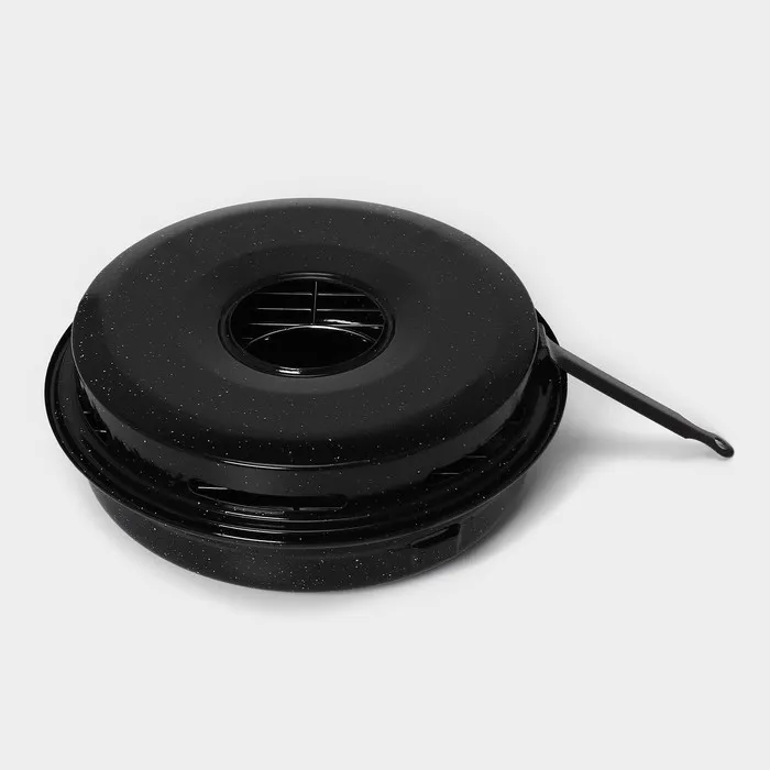 Накройте поддон крышкой и готовьте на среднем огне. Овощам достаточно 10–15 минут, рыбе — 25–30 минут, мясу — 35–50 минут. Время приготовления зависит от размеров, маринада и вида мяса.