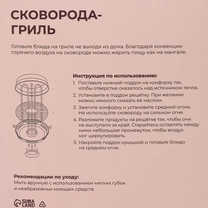 Принцип работы сковороды-гриль для газа основан на конвекции горячего воздуха, как в мангале. Здесь нет дыма и вредных канцерогенов, не нужно добавлять масло или жир. Еда получается более полезной и натуральной.