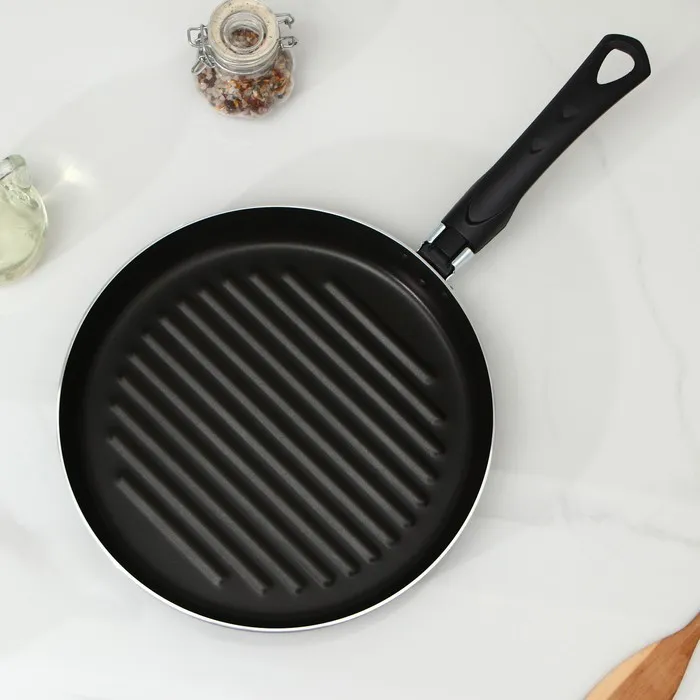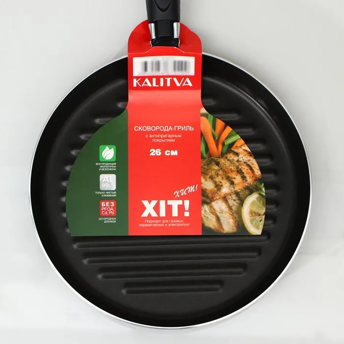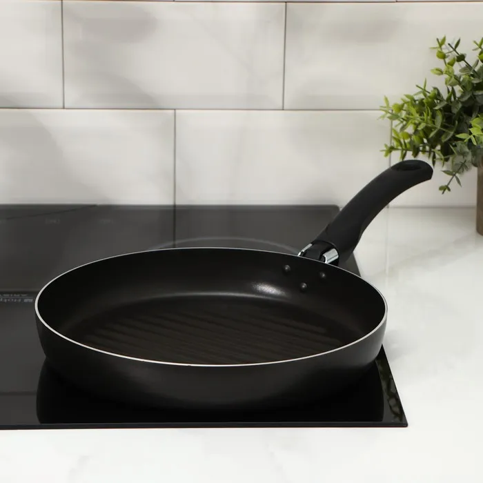 Сковорода-гриль «Хит», d=26 см, h=8 см, антипригарное покрытие, алюминий, чёрная — Характеристики