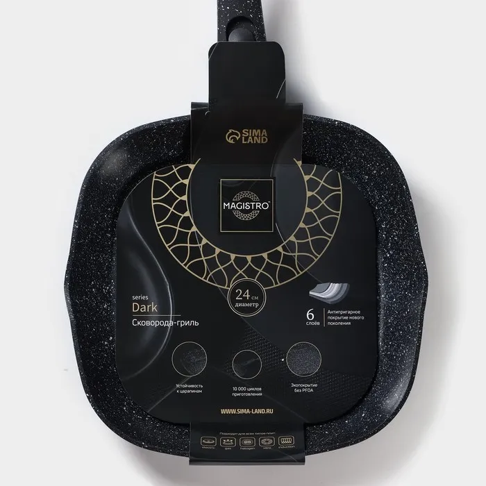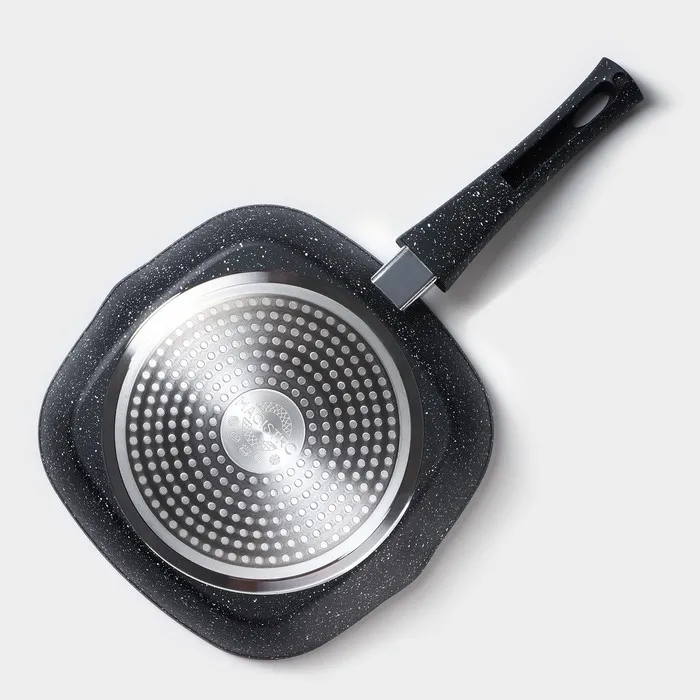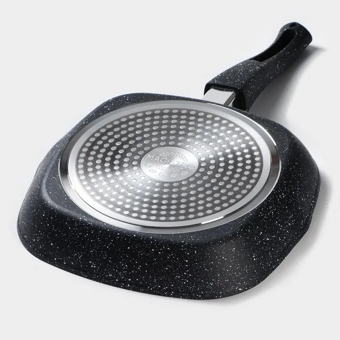 Сковорода гриль Magistro Dark, 24×24 см, квадратная, ручка съёмная soft-touch, антипригарное покрытие, индукция, чёрная — Характеристики