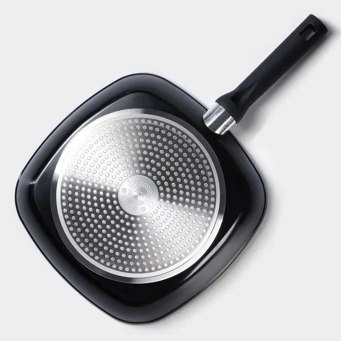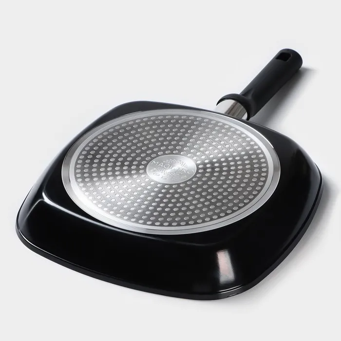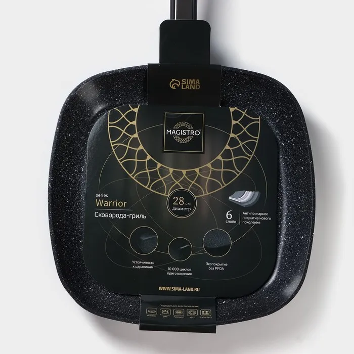 Сковорода-гриль Magistro Warrior, 28×28 см, кованый алюминий, квадратная, антипригарное покрытие, индукция, чёрная — Характеристики