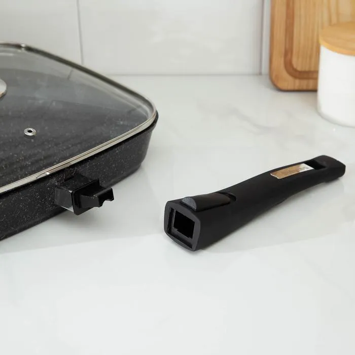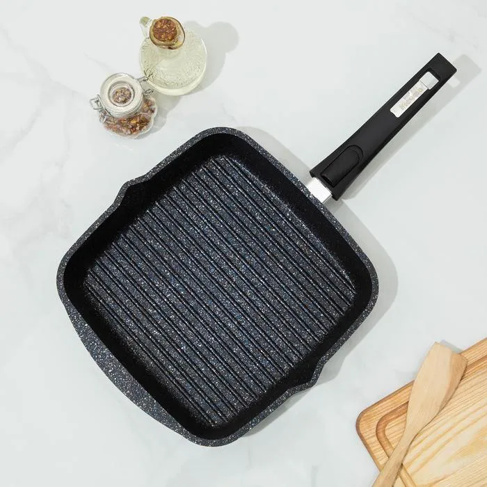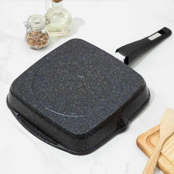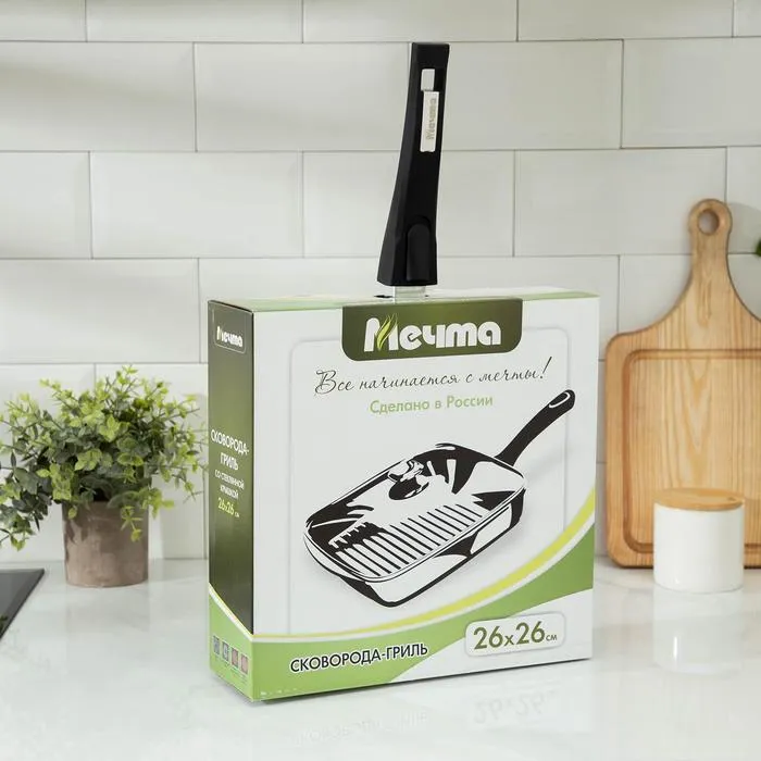 Сковорода-гриль Мечта «Гранит», 26×26, съёмная ручка, стеклянная крышка, антипригарное покрытие, литой алюминий, тёмно-синяя — Характеристики