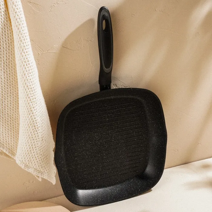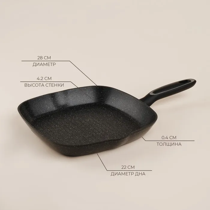 Сковорода-гриль SL Home, d=28 см, h=4.2 см, кованый алюминий, антипригарное покрытие, индукция, чёрная — Характеристики