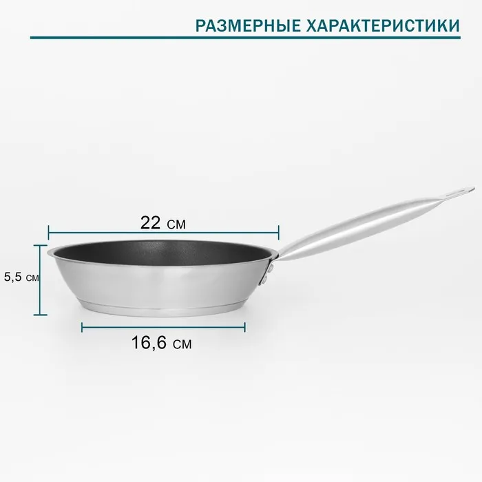 Сковорода Hanna Knövell, d=22 см, h=5.5 см, нержавеющая сталь, толщина стенки 0.6 мм, длина ручки 21.5 см, антипригарное покрытие, индукция — Характеристики