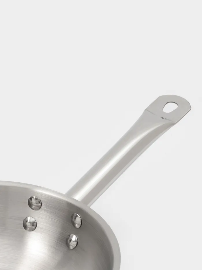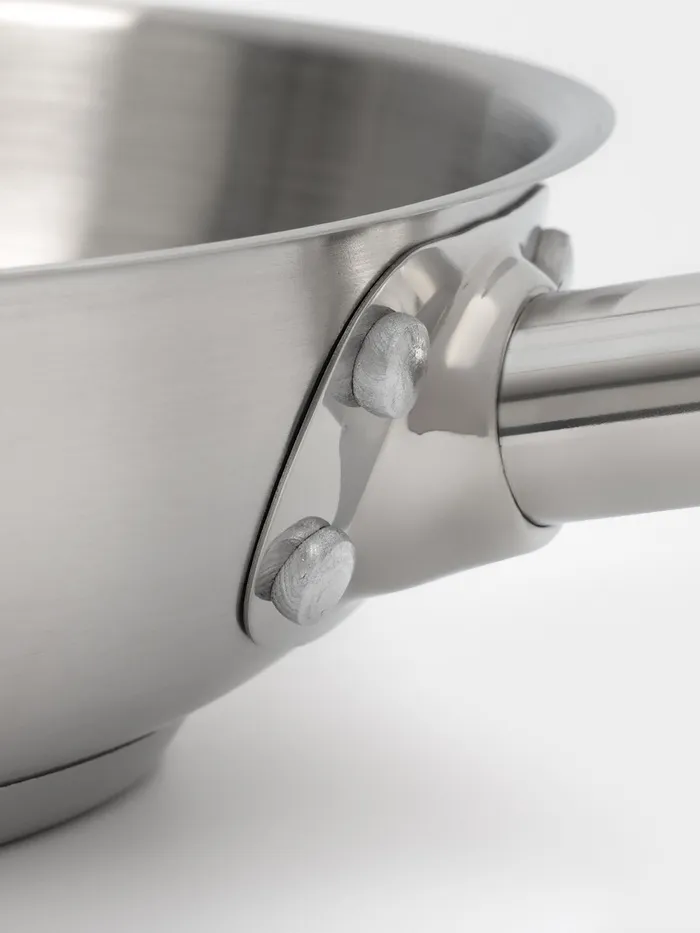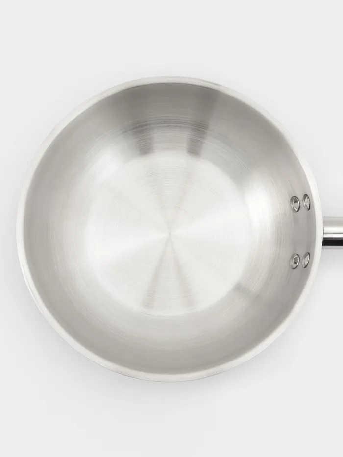 Сковорода из нержавеющей стали - это сочетание стиля, качества и функциональности, которое сделает вашу кухню еще уютнее и удобнее. С диаметром 24 см и высотой стенок 6 см — это идеальный выбор для тех, кто ценит качество и долговечность. С толщиной стенок всего 0,6 мм, она лёгкая, но при этом прочная и устойчивая к деформациям.