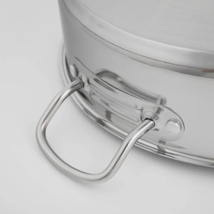 Серия «Общепит» обладает повышенным ресурсом использования. Нержавеющая сталь является идеальным материалом для посуды: не изменяет вкус продуктов, не образует соединений с пищей, соответствует всем санитарно – гигиеническим нормам, безопасна и надежна в использовании. Длительный срок службы: не подвержена коррозии, прочная, не деформируется со временем. Теплораспределительное дно подходит для всех видов плит, в том числе индукционных.