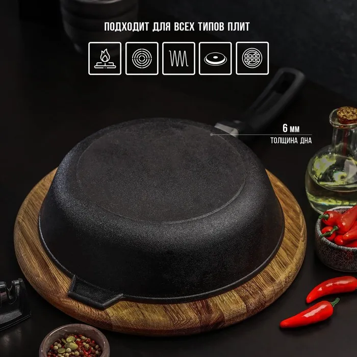 Сковорода литая чугунная Magma, d=24 см, h=6 см, пластиковая ручка, индукция — Характеристики