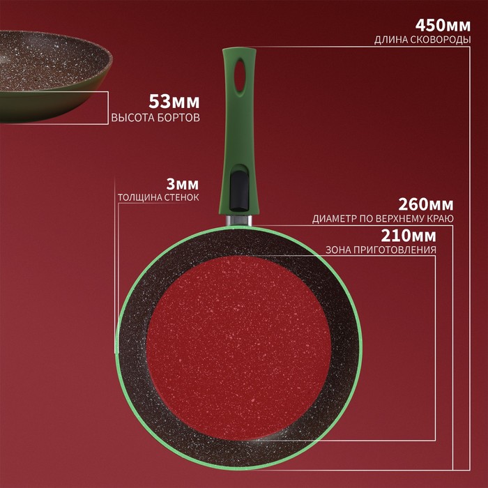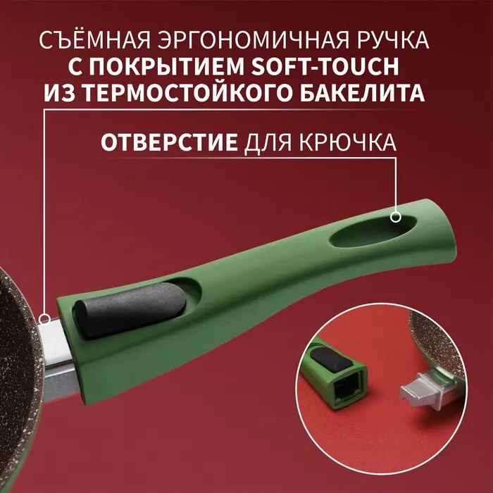 Сковорода Magistro Avocado, d=26 см, кованый алюминий, съёмная ручка soft-touch, антипригарное покрытие, индукция, зелёная — Характеристики
