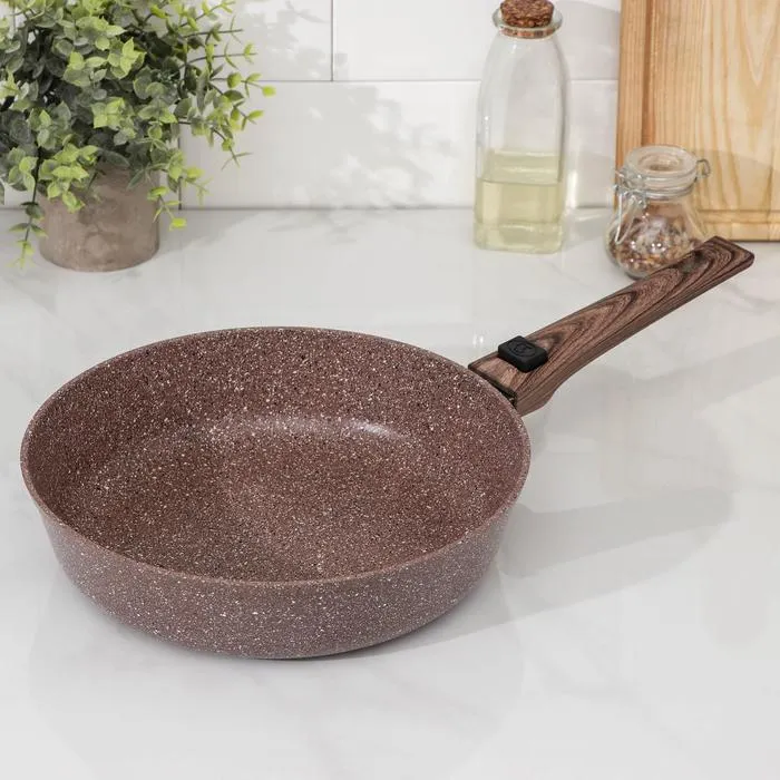 Сковорода Magistro серии Avocado изготовлена из кованого алюминия и имеет сверхпрочное антипригарное покрытие. Покрытие полностью безопасно для здоровья, не содержит PFOA и других вредных веществ. В такой сковороде удобно жарить, тушить, она прекрасно сохраняет сочность мяса, рыбы и овощей. Благодаря надежному антипригарному покрытию на сковороде можно готовить с минимальным количеством масла: продукты не прилипнут, не подгорят.