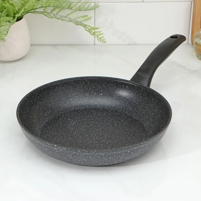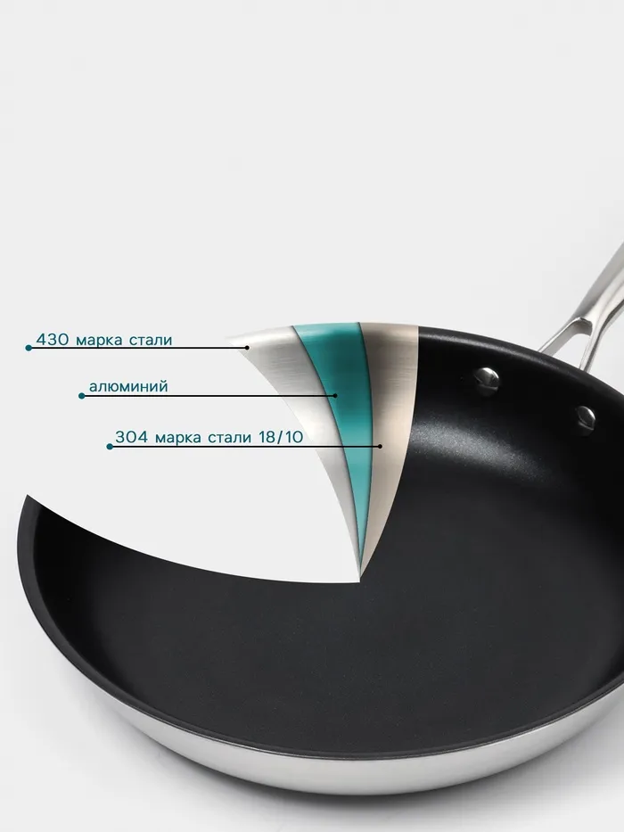- Высококачественый кованый алюминий с толстым дном 3 мм сохранит форму изделия даже если сковородка была перегрета.