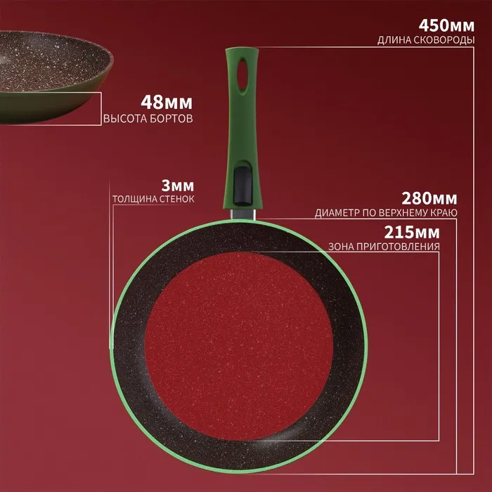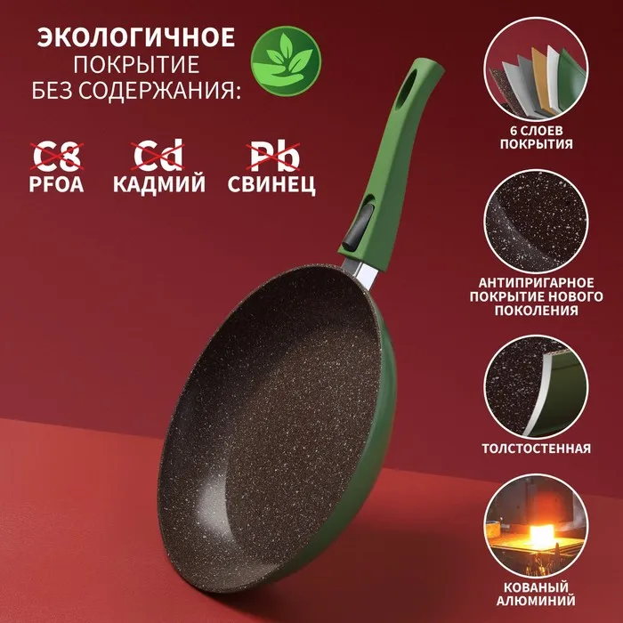 Сковорода Magistro Avocado, d=28 см, кованый алюминий, съёмная ручка soft-touch, антипригарное покрытие, индукция, зелёная — Характеристики