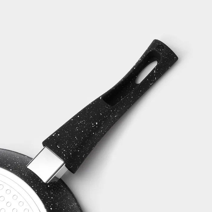 - Многослойное антипригарное покрытие с эффектом мрамора снижает расход масла и уменьшает калорийность блюд.