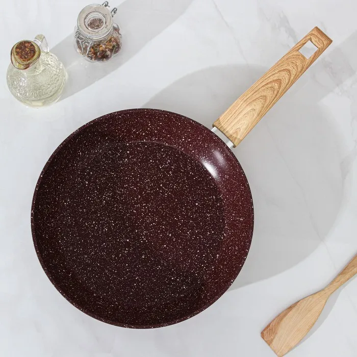 - Многослойное антипригарное покрытие с эффектом мрамора снижает расход масла и уменьшает калорийность блюд.