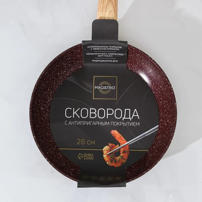 Сковорода Magistro Natural. Brown, d=26 см, кованый алюминий, ручка soft-touch, антипригарное покрытие, индукция, коричневая — Характеристики