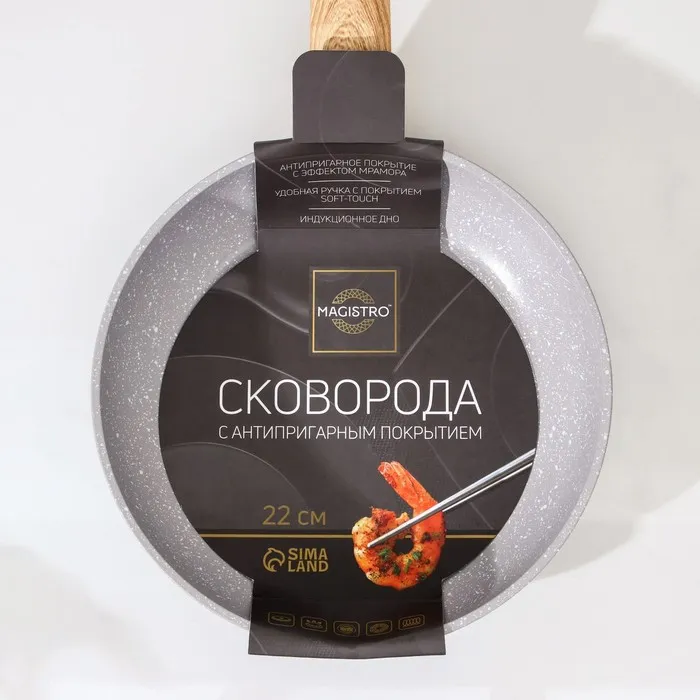 Сковорода Magistro Natural, d=22 см, кованый алюминий, ручка soft-touch, антипригарное покрытие, индукция, серая — Характеристики