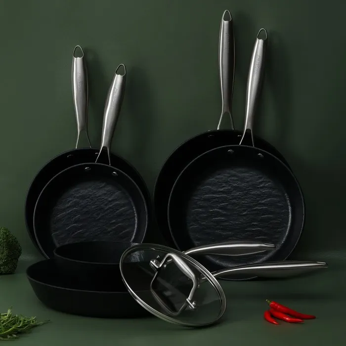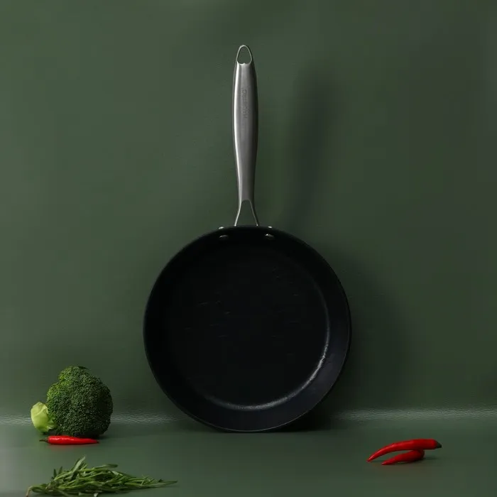 - Антипригарное покрытие Greblone C3: предотвращает пригорание пищи и упрощает процесс чистки сковороды.