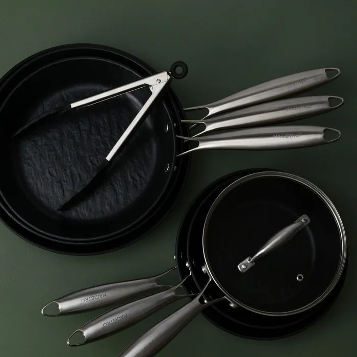 Сковорода Magistro Rock Stone изготовлена из прочного алюминия и имеет антипригарное покрытие Greblone C3.Она подходит для использования на всех типах плит, включая индукционные. Стильный дизайн в стиле камня прекрасно дополнит интерьер любой кухни.
