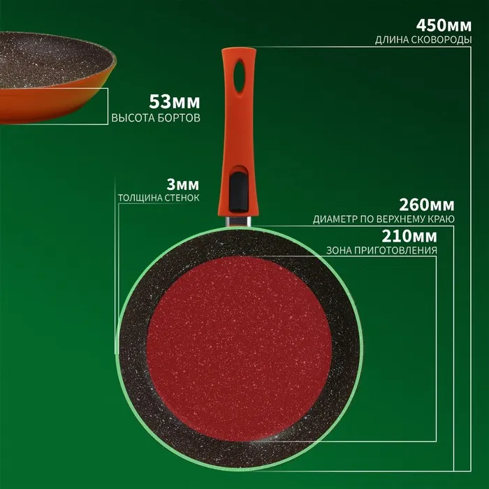 Сковорода Magistro Terra, d=26 см, кованый алюминий, съёмная ручка soft-touch, антипригарное покрытие, индукция, оранжевая — Характеристики