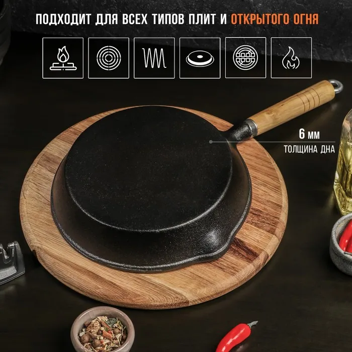 Перед первым использованием уберите наклейки, упаковку, прокалите посуду до полного выгорания масла. Дайте посуде остыть, протрите, смажьте посуду тонким слоем растительного масла и прокалите (в течение 20-25 минут). После остывания посуды, протрите сухой ветошью, просушите. Посуда готова к эксплуатации. Прокаливать посуду желательно на свежем воздухе или в хорошо проветриваемом, вентилируемом помещении.
