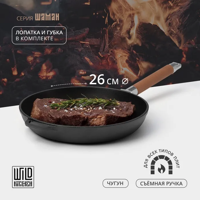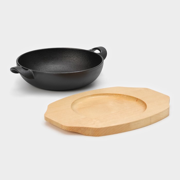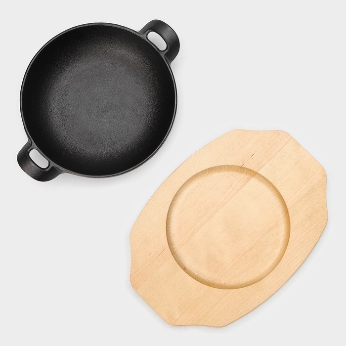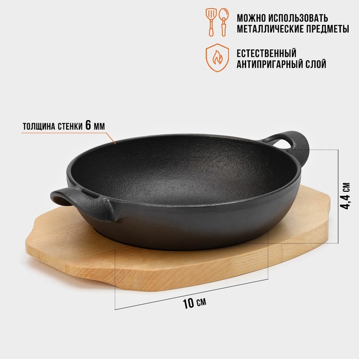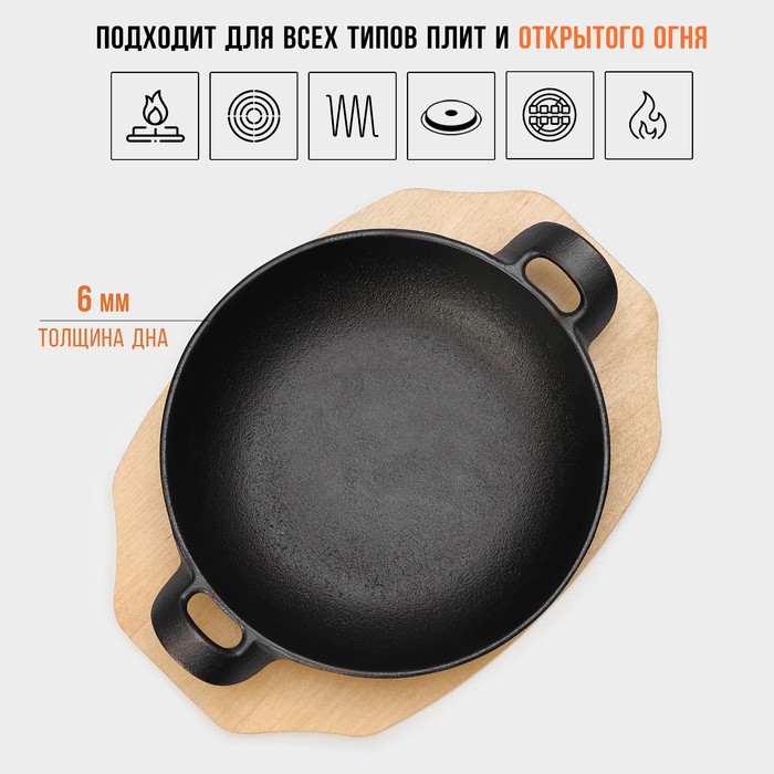 Сковорода Magma «Янсан», 21,5×16,5×4,4 см, на деревянной подставке, чугун, индукция, чёрная — Характеристики