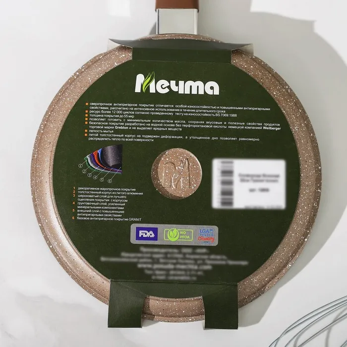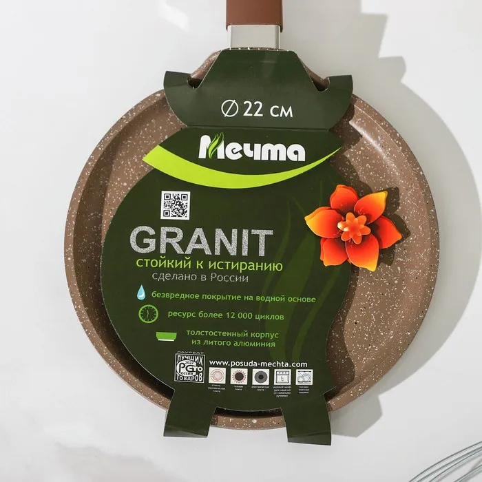 Сковорода Мечта блинная «Гранит Brown», d=22 см, пластиковая ручка, антипригарное покрытие, коричневая — Характеристики