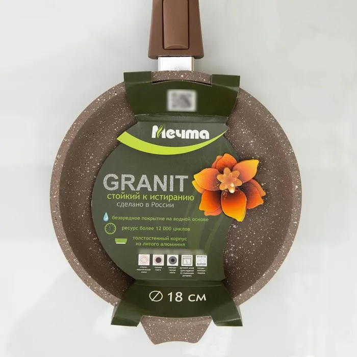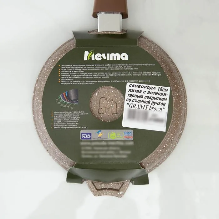 Сковорода Мечта «Гранит Brown», d=18 см, антипригарное покрытие, съёмная ручка, литой алюминий, МИКС — Характеристики